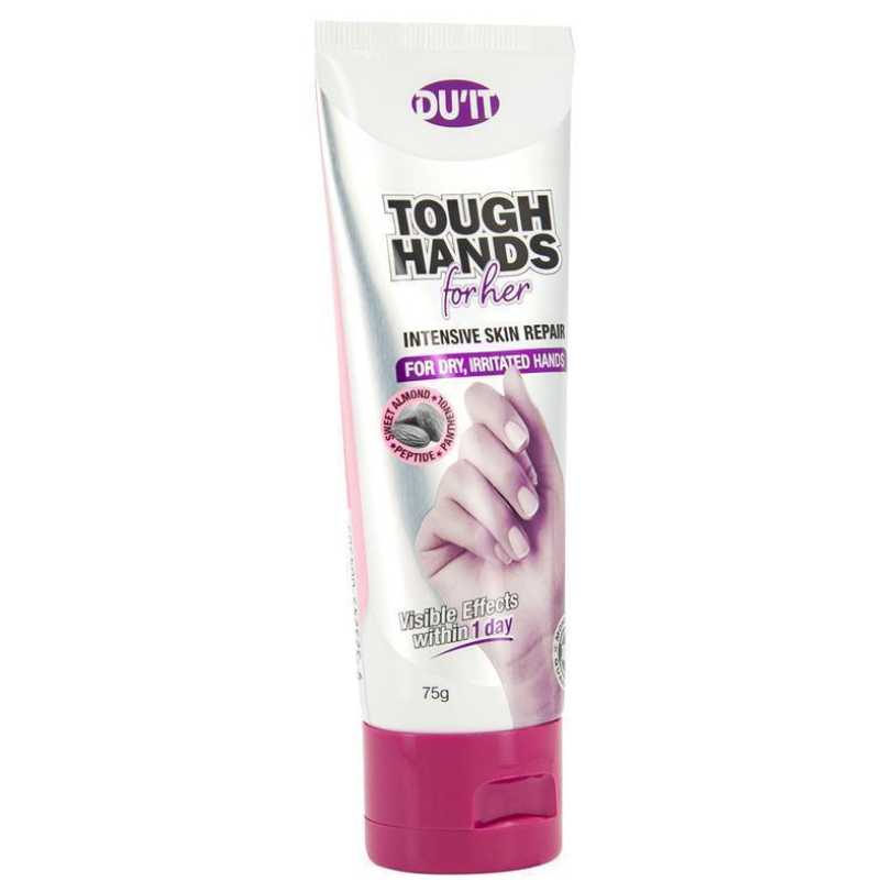 DU’IT Tough Hands For Her 強效乾性皮膚護手霜是一款經過臨床驗證的抗衰老女性護手霜,適合疲憊、過度勞累的雙手。 它修復、提亮和軟化干燥的雙手,具有明顯的保濕和保護乾燥、粗糙和受刺激的雙手的效果。 1 天可見效果,它不油膩,可密封裂縫、補充流失的油脂、調理皮膚並形成保護屏障,讓雙手保持最佳狀態。 適合敏感肌膚,不含任何刺激物,是澳大利亞製造和擁有的。 它提供持久保護,防止因反復清洗、長時間使用乳膠手套、化學品、溶劑、膠水、清潔劑以及接觸其他過敏原和刺激物而對手造成傷害。